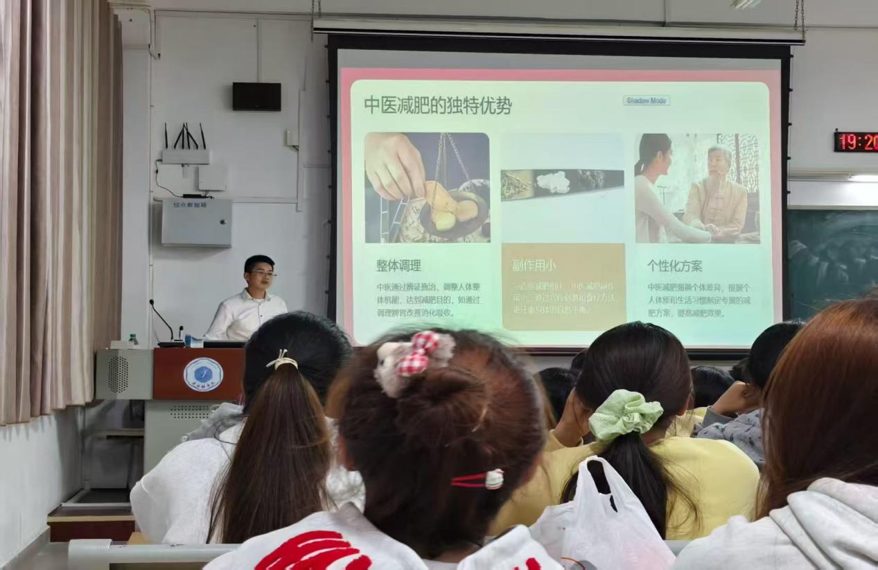 课堂上,肖帅勇学长结合中医经典理论与青年群体常见肥胖问题,深入浅出解析肥胖的本质的是脏腑功能失调、痰湿内停、经络气血不畅,通俗阐释“调理体质、标本兼顾”的减肥逻辑。